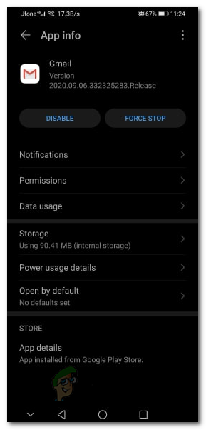 Gmail App Info - After that, open up the app again and try sending the email. See if that fixes the issue.