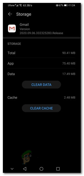 Gmail Storage - Here, tap the Clear Cache and Clear Data options one-by-one.