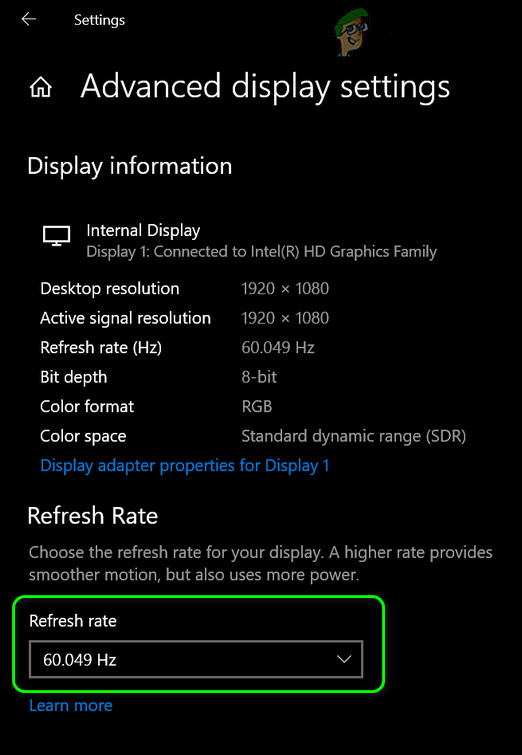 Open Display Settings - Now select Advanced Display Settings (in the Display tab) of the affected display and change the refresh rate (either to 59 or 60).