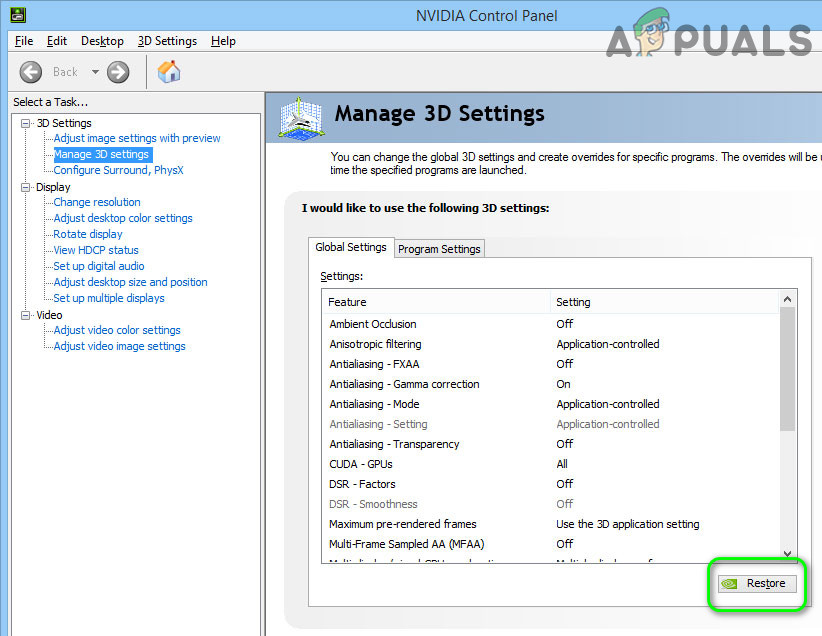 Restore the Graphics Settings - Now reboot your PC and check if the issue is resolved.