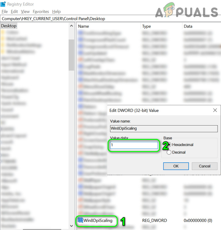 - Now, in the right-pane, double click on Win8DpiScaling and change its value to 1.