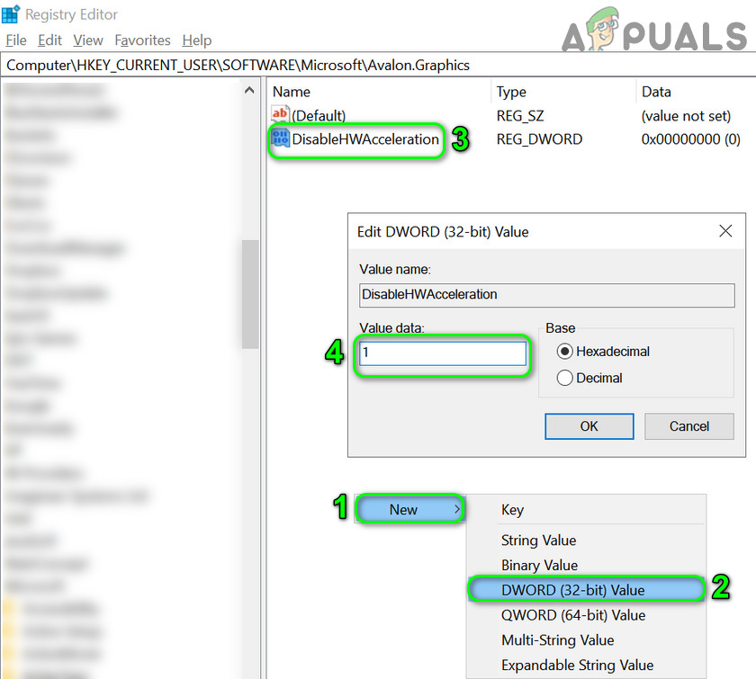 - Then create a Dword (32-bit) value and name it DisableHWAcceleration.