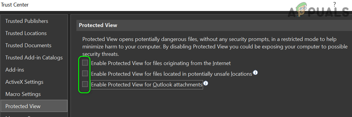 Solution 5: Disable Protected View and Other Options in Office