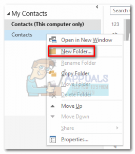 - Right-click on Contacts and select New Folder.
