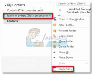 - Right-click on the folder that isn’t getting recognized as an address book and select Properties.