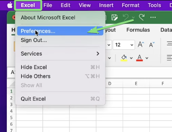 - Click Excel in the menu bar.