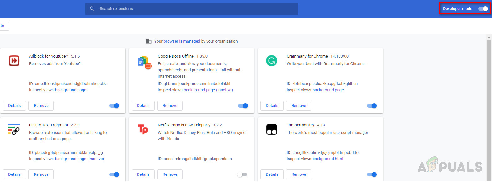 Navigate to extensions library on chrome. - Enable Developer Mode on the top right.