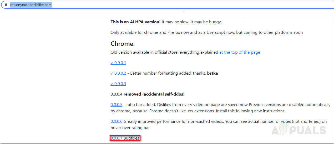 - Open Chrome and visit “returnyoutubedislike.com”, locate and download the latest version of the plugin.