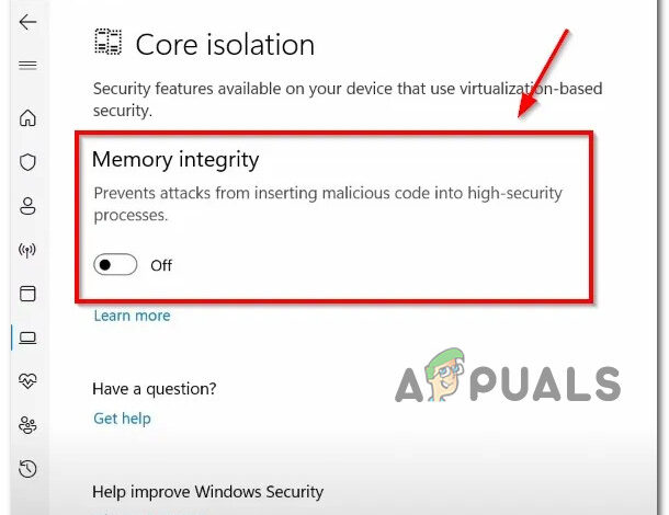 Note: Core isolation isolates the core programs in memory to shield them from malicious applications. It accomplishes this by performing those fundamental operations in a virtualized setting.