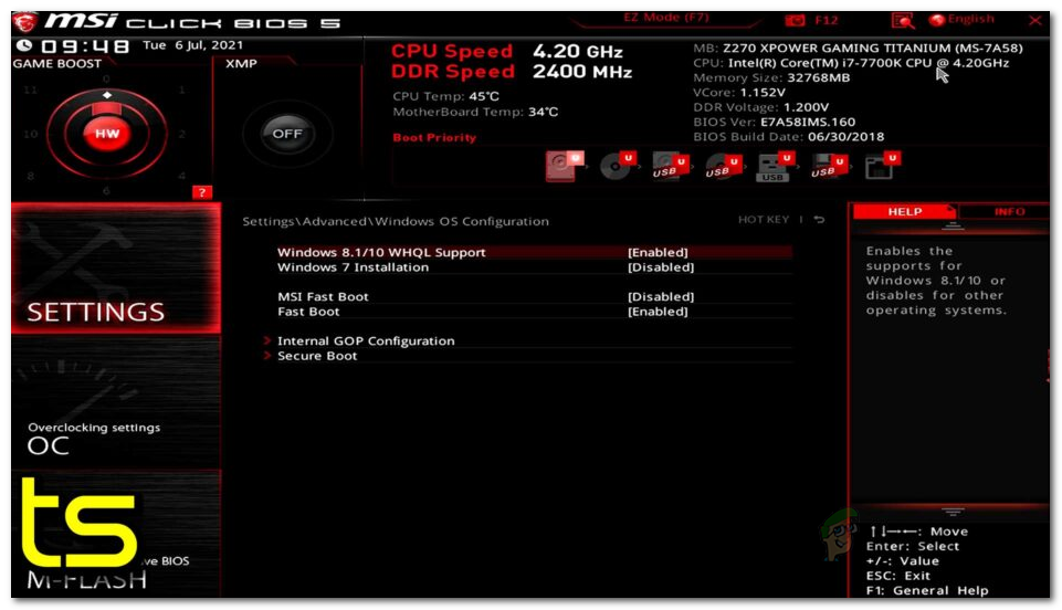 - After your PC boots back up, move down to the next step below to enable Secure boot.