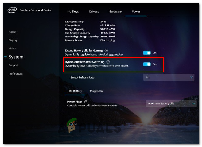 - Once you’re inside the Power tab, turn Dynamic Refresh Rate On or Off via the dedicated option on the right-hand side.