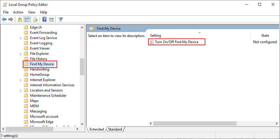 Computer Configuration\Administrative Templates\Windows Components\Find My Device