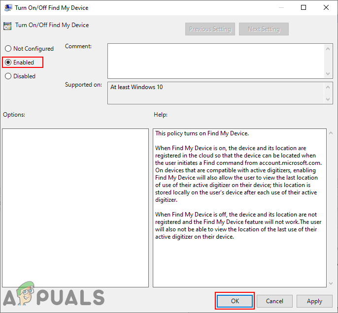 Method 2: Enabling or Disabling ‘Find My Device’ through Local Group Policy Editor
