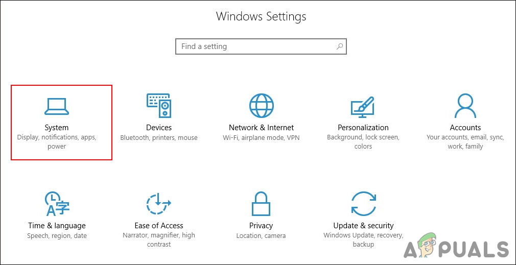 - Press the Windows and I keys together to open the Windows Settings app and then select the System settings.