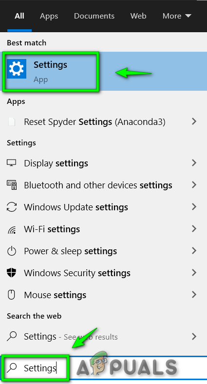 - Firstly, type ‘Settings’ in the ‘Search bar’. After that, click on the ‘Settings’ app. Open it to proceed.
