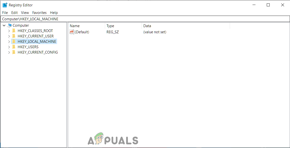 - Expand ‘HKEY_LOCAL_MACHINE’ listed on the left side in the Registry Editor window and navigate through the following subdomains under there.