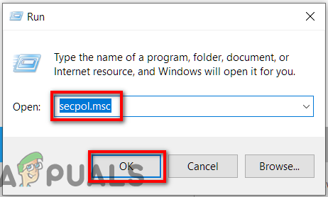 - A pop-up dialogue box will appear. Type ‘secpol.msc’ in the textbox named ‘Open’ and click on the ‘OK’ button to continue as shown in the below image.