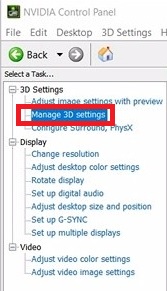 - Now make your way to Manage 3D settings. It’ located under 3D settings.