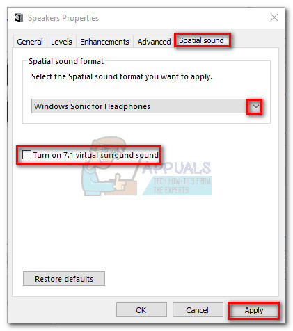 In addition to that, make sure that you don’t have any software installed that might be applying audio effects. Having additional sound effects enabled while using Windows Sonic might end up lowering the audio quality since the sound will be processed twice.