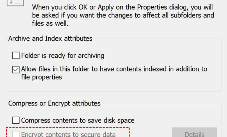 Fix: ‘Encrypt Contents to Secure Data’ Option Greyed Out