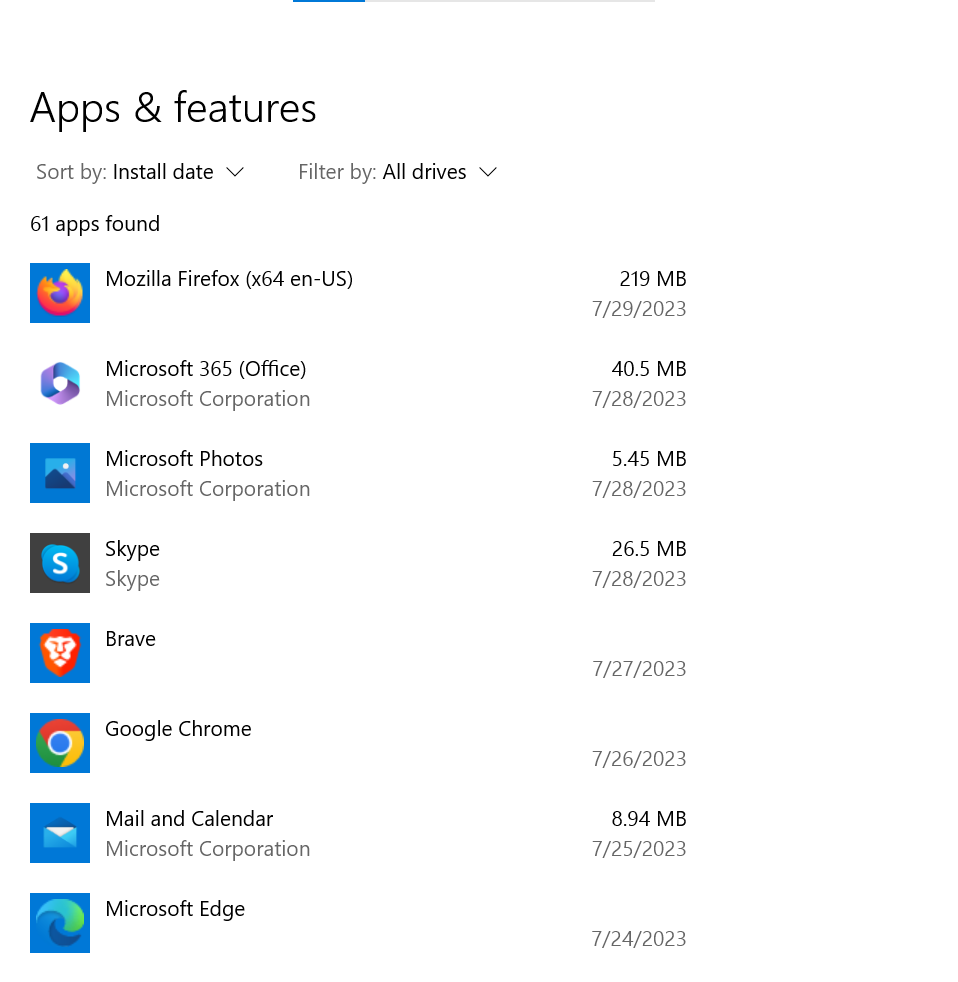 Add or Remove Programs - Next, look through the list of installed programs for any unfamiliar or suspicious entries. These could be PUAs or potentially malicious software responsible for the browser hijacking. You can sort the list by “Install Date” which can be helpful in determining the latest downloaded applications.
