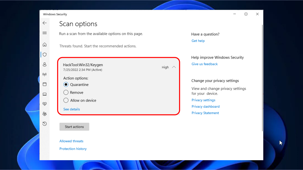 Antivirus software is another option to try if none of the other methods work. Use whichever professional virus protection program you already own. Windows comes with a pretty potent antivirus tool already built in called Windows Defender.