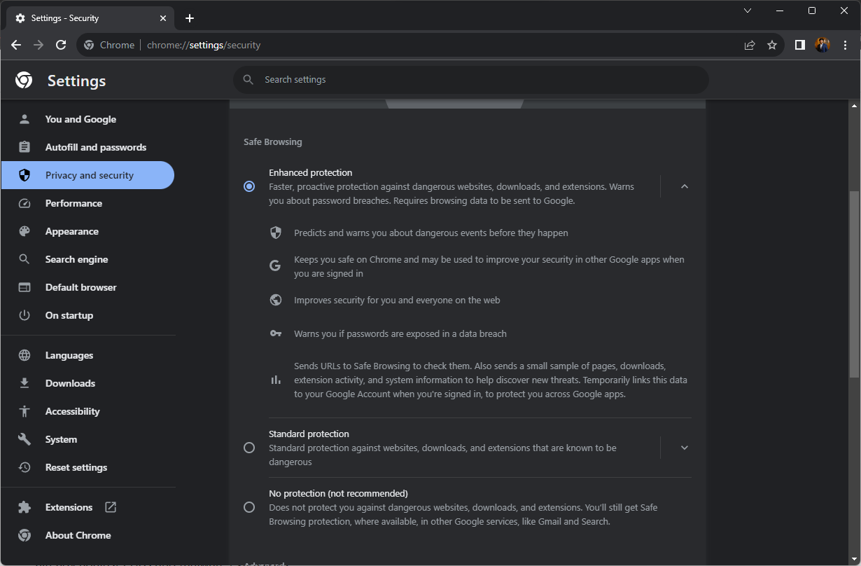 chrome://settings/security
