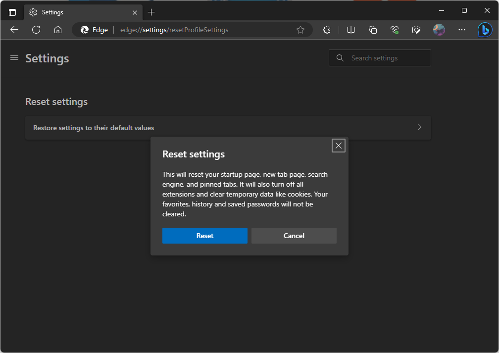 3. Reset the Browser
