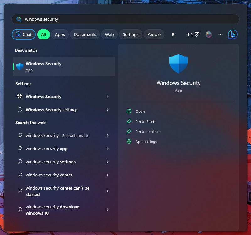 - Press the Windows key and search for “Windows Security,” click on the first option that pops up.