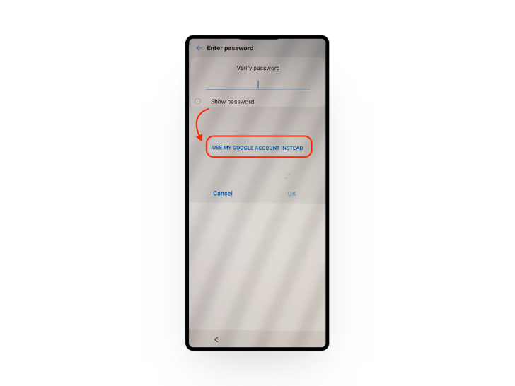 - On the “Verify Password” screen, choose “Use My Google Account Instead.”