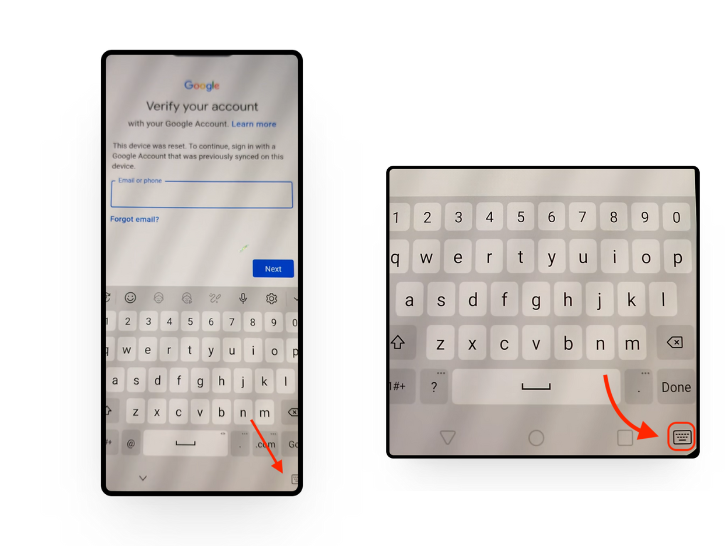 Choose to proceed via Gmail - When prompted to enter your email, select the “Change Keyboard” button located at the bottom right corner.
