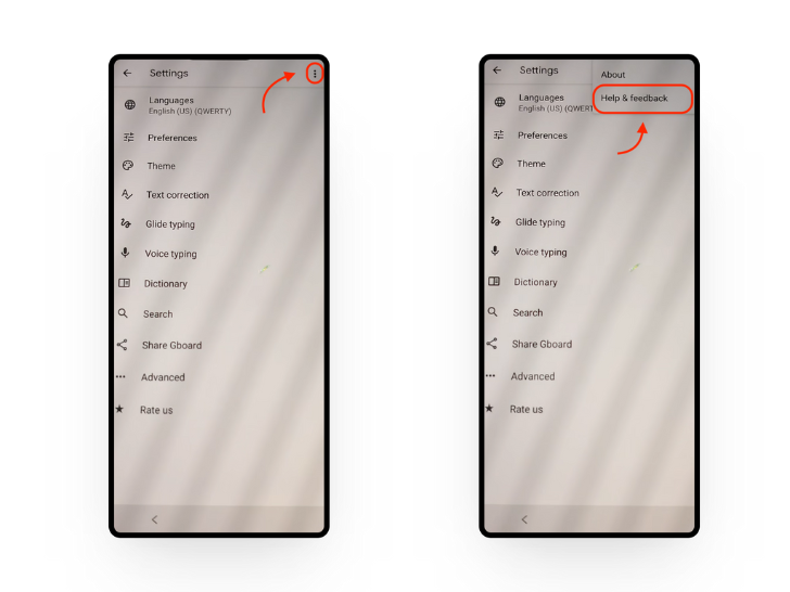 Long-press the keyboard button to open Input Settings - In Settings, tap the three vertical dots in the top right corner.