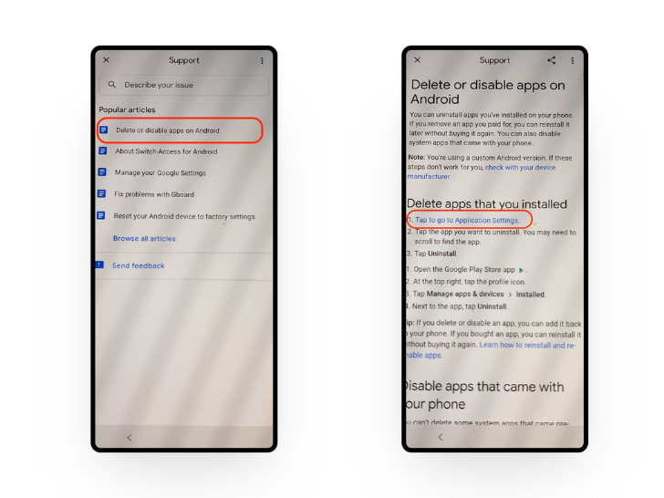 Choose “Help and feedback” - Tap on “Delete or disable apps on Android.“