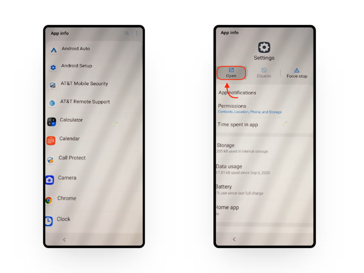 - Tap on the hyperlinked text: “Tap to go to Application Settings.” This will take you to the App info section of the Settings.