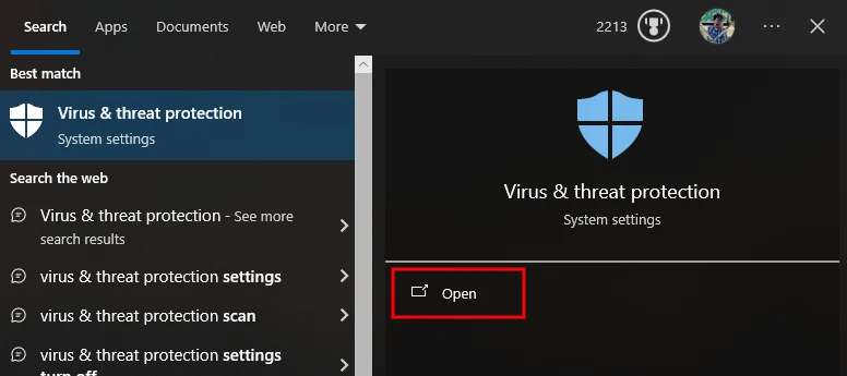 - Search for Virus & threat protection in the Windows search bar and open it.
