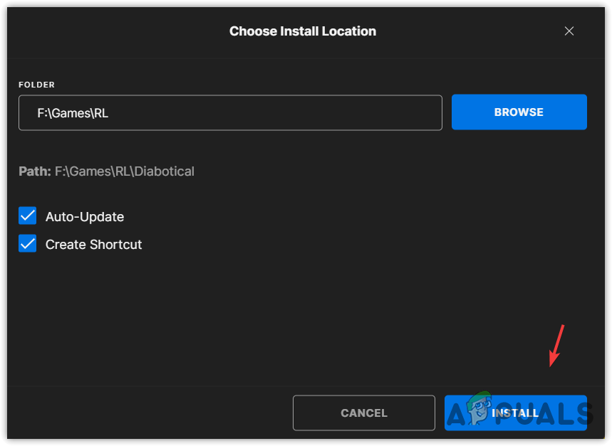 - Once the folder is removed, launch Epic Games, and try installing the game showing this error.
