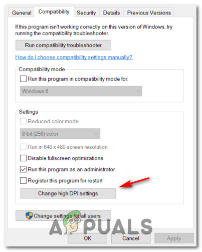 Many users suggested that changing the DPI settings resolve the problem for them. Check if you had set the DPI settings to low, then this might be conflicting and blocking the application and if none of the above fixes works then you can change the High DPI settings. Follow the steps below: