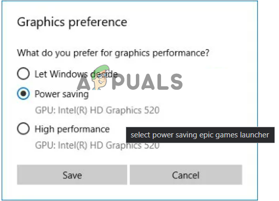 Click on the Power savings option - Now close the window and re-launch the Epic Games Launcher.