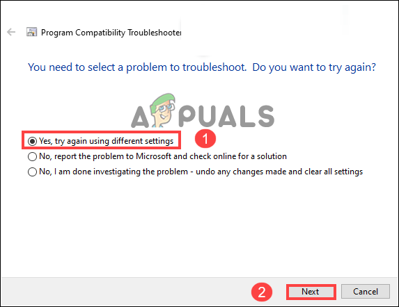 - Now go back to the Program Compatibility Troubleshooter window and tap on Next