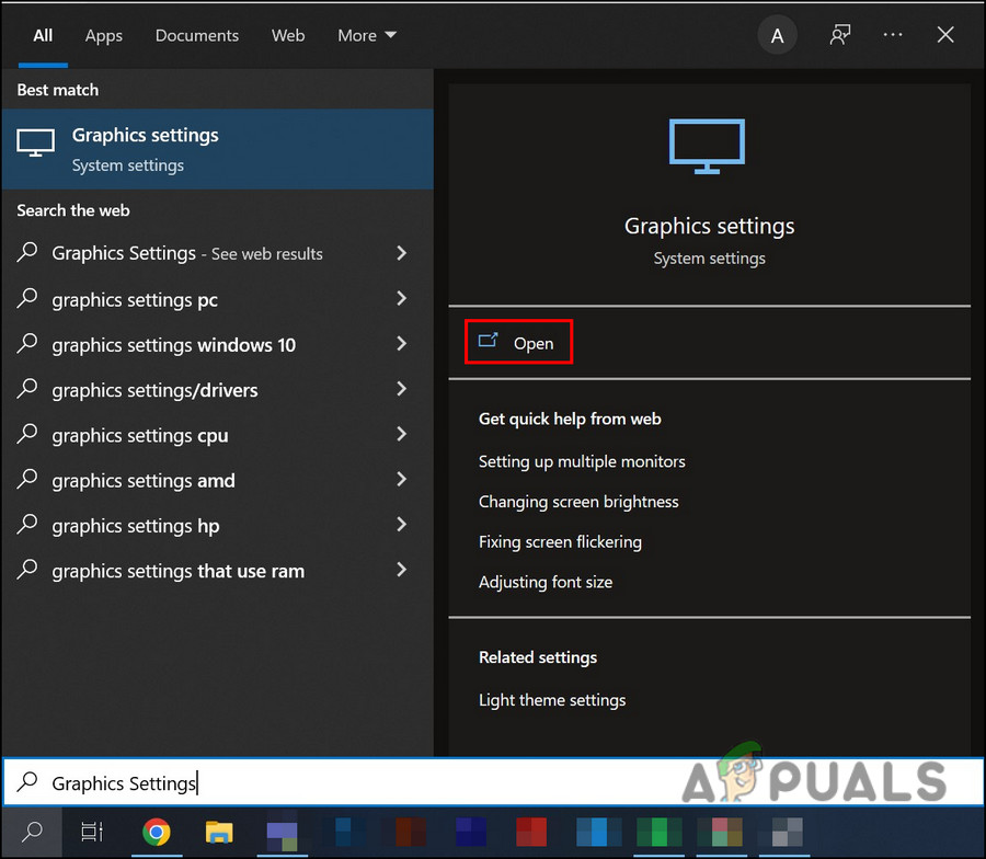 - Press Windows + I key to open Settings and in the window that appears type graphics settings in the search box.