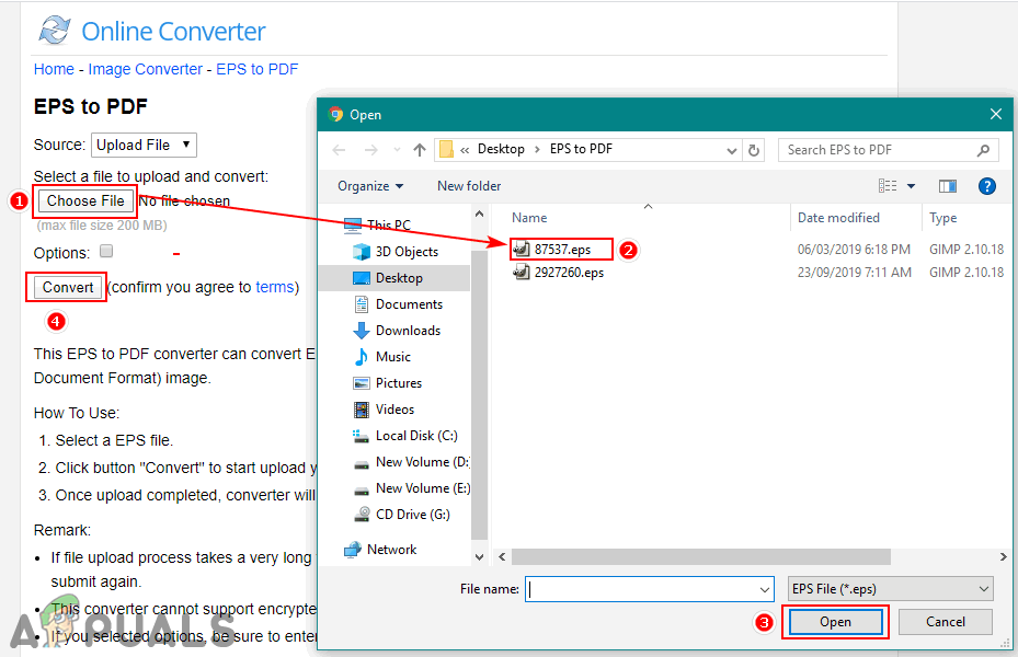 Using the online website for the quick conversion between two files is the best method. It takes less time and space to complete the task of converting the EPS file to PDF. If you Google search EPS to PDF, then you will find many online converters for this specific conversion. Every website will have different features and different results; we are going to use ‘Online Converter‘ as a demonstration for conversion between these two files.