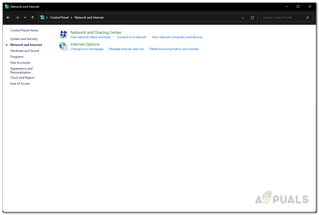 Opening up Control Panel - On the Control Panel window, make your way to Network and Internet.
