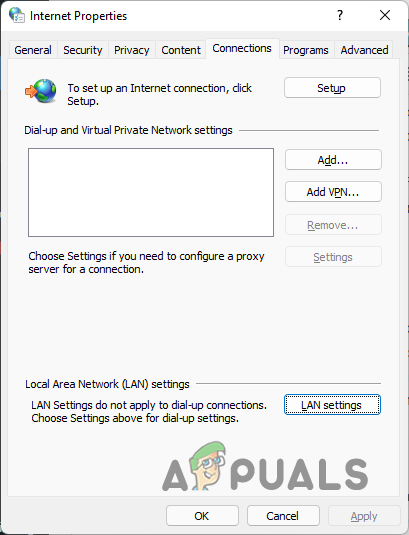 Opening up LAN Settings - On the Connections tab, click the LAN settings option.