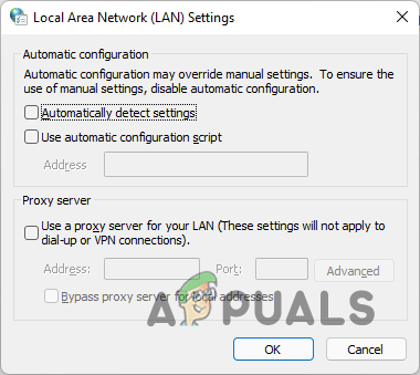 - After that, on the Local Area Network Settings window, make sure everything is unchecked.