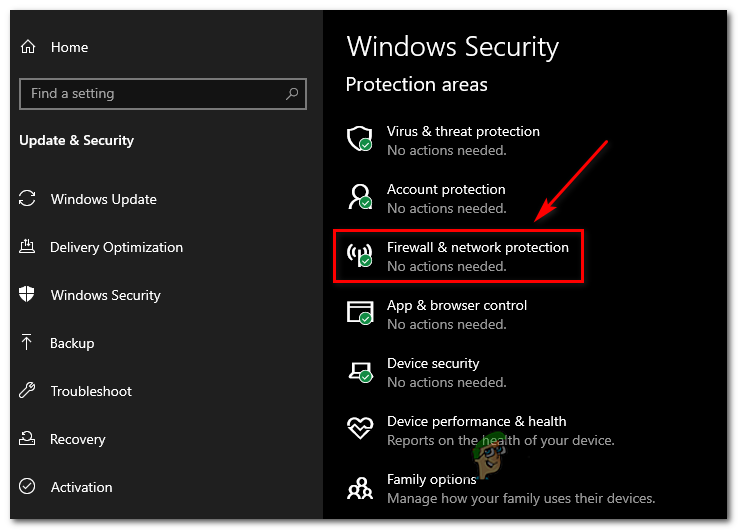 - Go back to the first Windows Security window and click on Firewall & Network Protection.