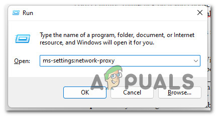 - Then, type “ms-settings:network-proxy” in the text box and press Enter.