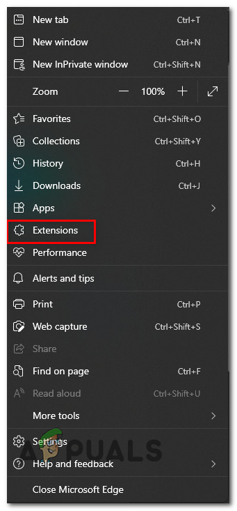 - From the context menu that just appeared, click on Extensions.