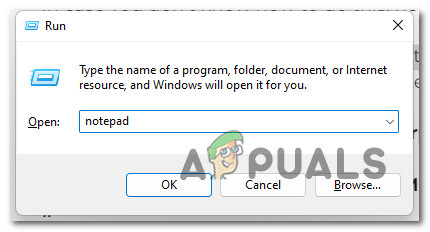 - Type ‘notepad.exe’ into the text box, and then press Ctrl + Shift + Enter to open an elevated Notepad prompt that grants admin access to the window
