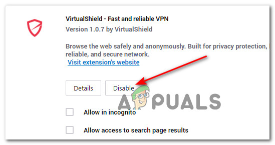 Disable the extension on Google Chrome