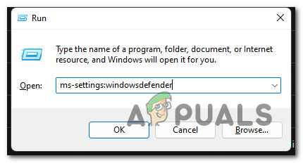 - To open the Windows Security menu, press the Windows key + R to open a Run dialog box. Type ‘windowsdefender’ inside the box and press Enter.